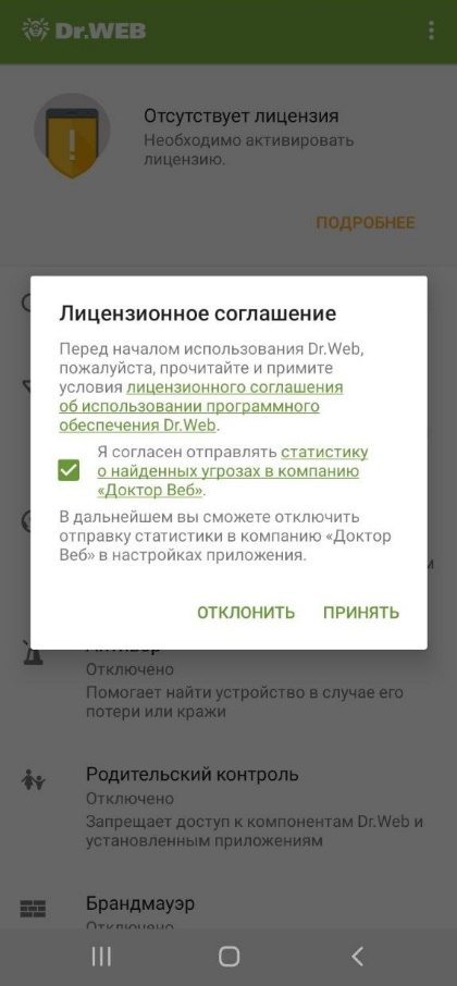 Для этого Dr.Web должен быть установлен на устройстве, лицензия должна быть действующая.