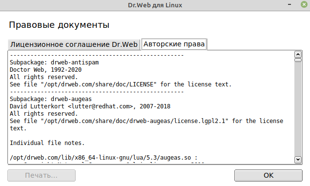 Информация об установленном ПО Dr.Web: