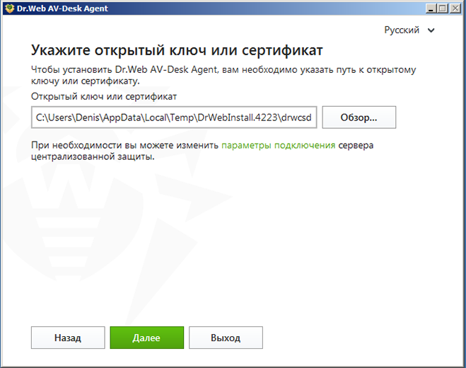 Вы также можете использовать для установки полный инсталляционный пакет Агента.