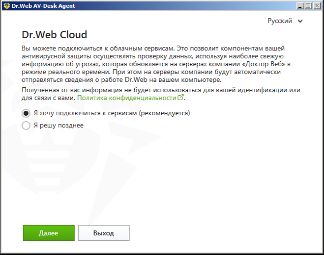 Поставьте галочку у слов Я разделяю политику конфиденциальности «Доктор Веб» и даю согласие на обработку моих персональных данных. Предварительно можно нажать на ссылку на этой фразе и ознакомиться с политикой конфиденциальности (https://company.drweb.ru/policy).