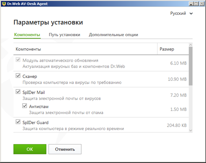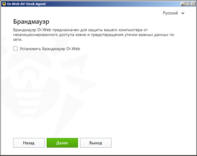 Все компоненты, кроме сторожа, необходимо включить и настроить после установки Dr.Web.
